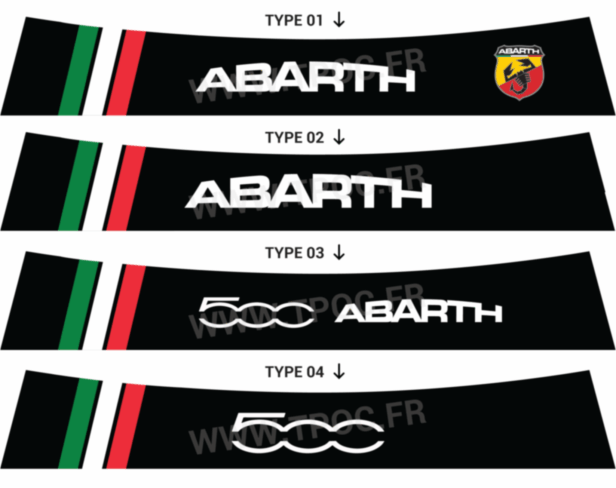 Offrez un look racing, italien et agressif à votre Fiat 500 ou Fiat 500 Abarth grâce à notre bandeau pare-soleil spécialement conçu pour épouser parfaitement la forme du pare-brise de votre Fiat 500.
