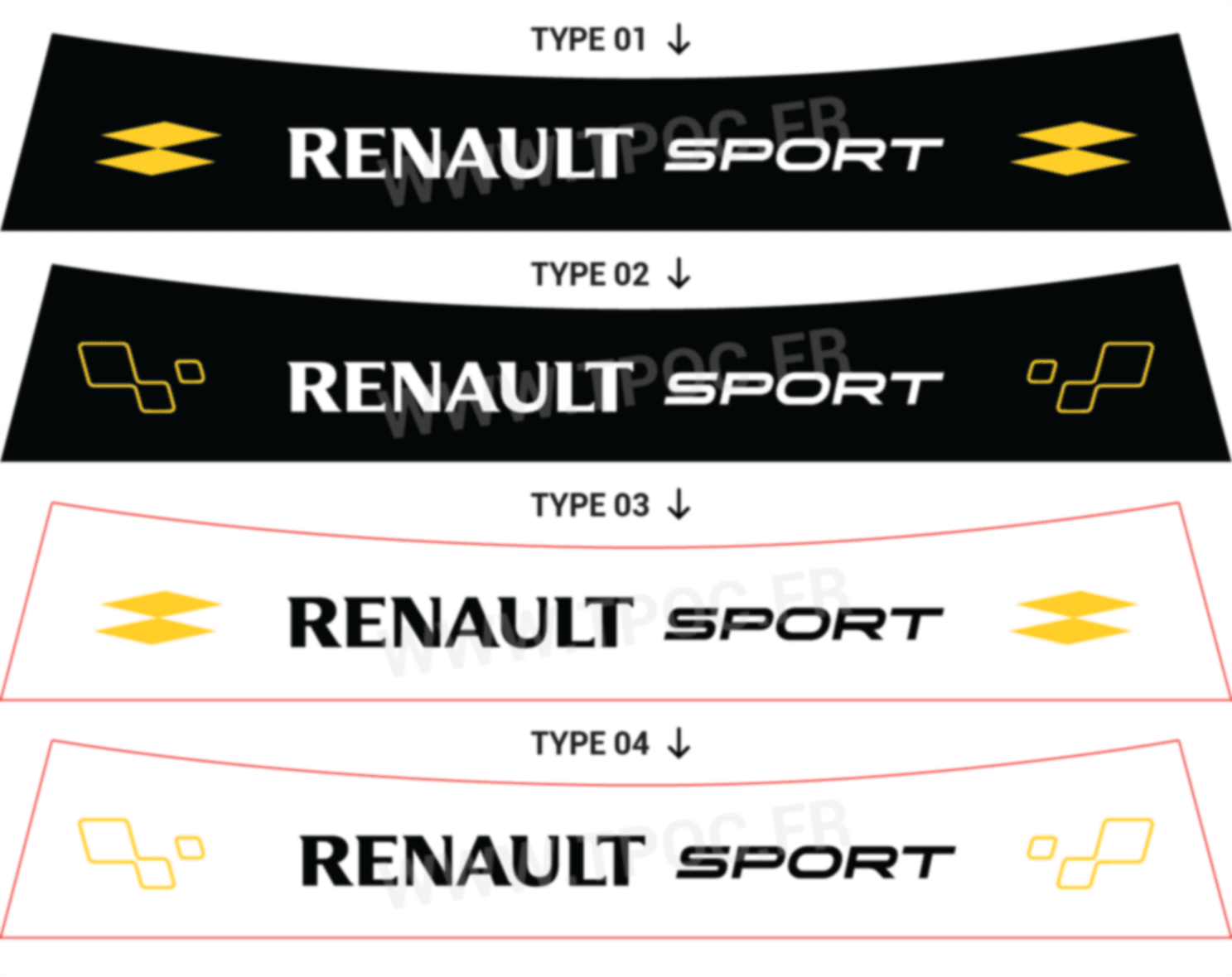 TYPE 01, TYPE 02, TYPE 03, TYPE 04